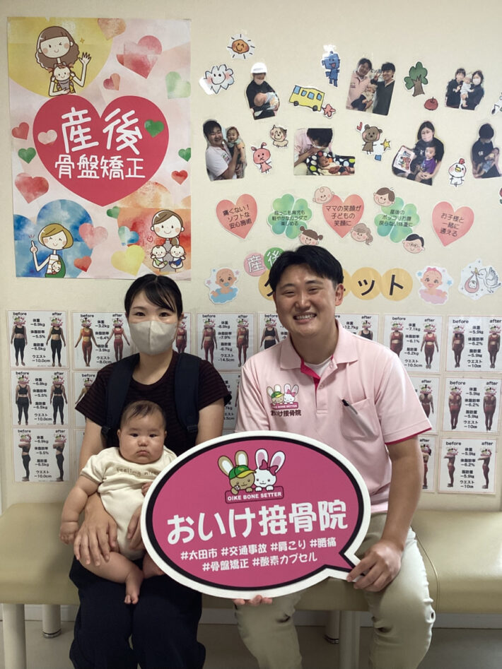 この度は数ある院の中からおいけ接骨院 太田藪塚院をお選びいただきありがとうございます。今回は産後骨盤矯正という事で、お子様も一緒に来ていただき、楽しい時間をありがとうございました。
