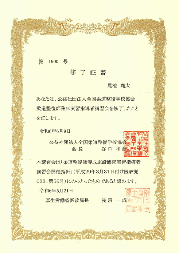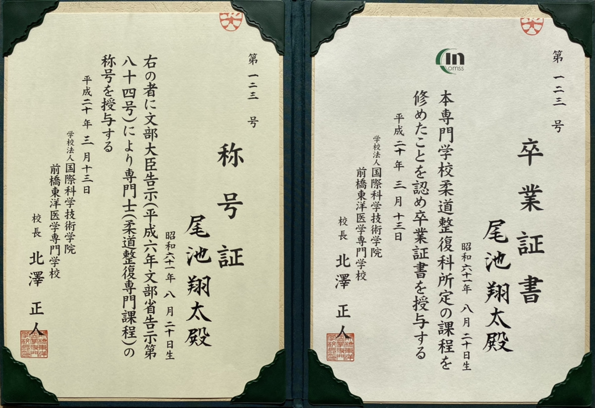 前橋東洋医学専門学校柔道整復科卒業(現:中央医療スポーツ専門学校)